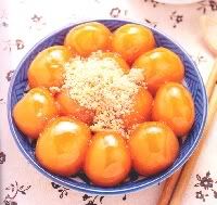 ( 4 ) 煲滾5杯水, 放入片糖, 煮溶, 放入粉糰, 煮約5分鐘至浮起水面, 再浸約5分鐘, 然後撈起, 瀝乾水份即成糖不甩.