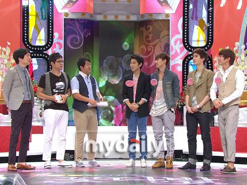 在事先的预热中,他们4位被要求向他们感兴趣的女子成员献花。