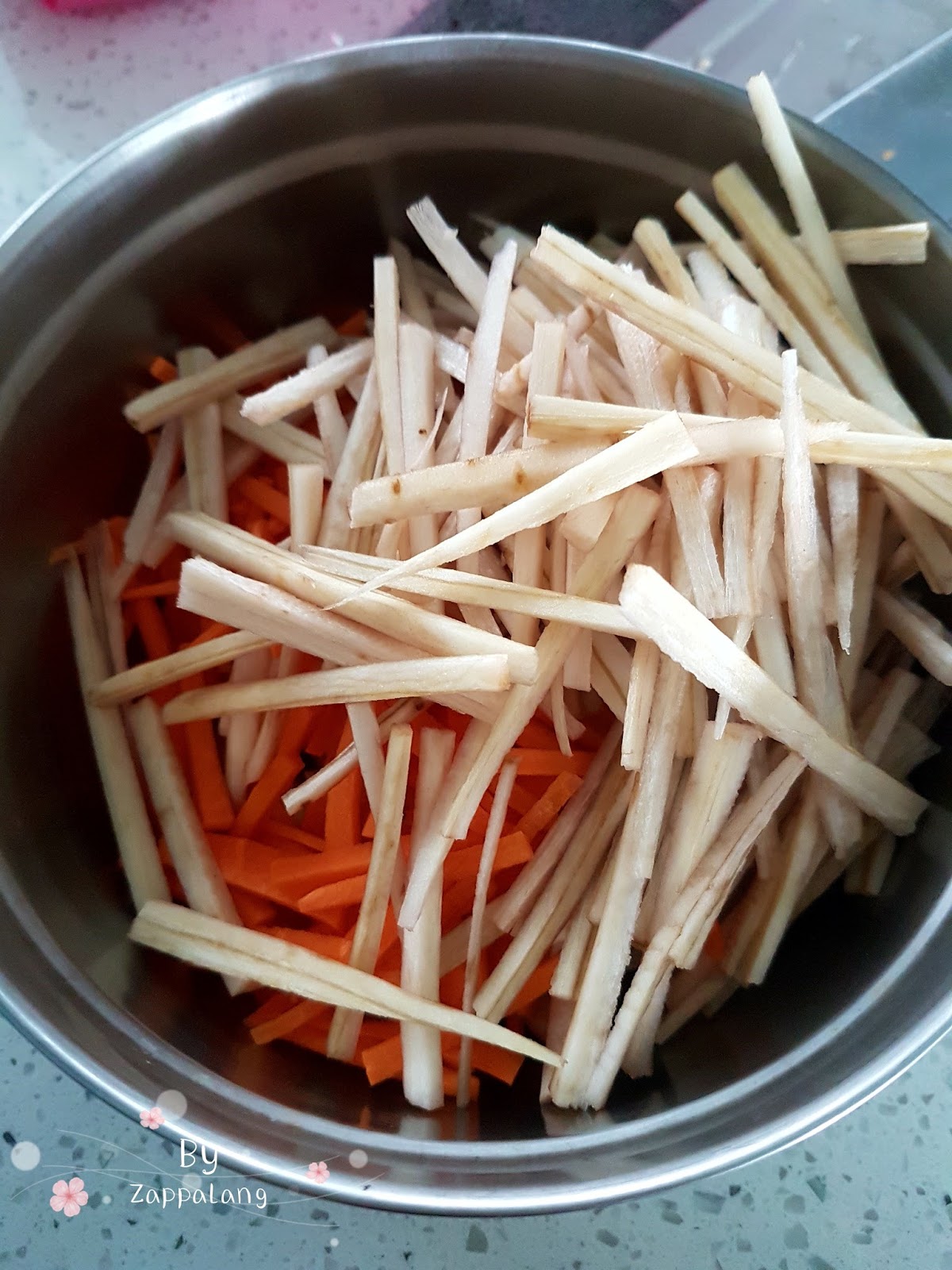 5。红萝卜去皮后切丝备用。