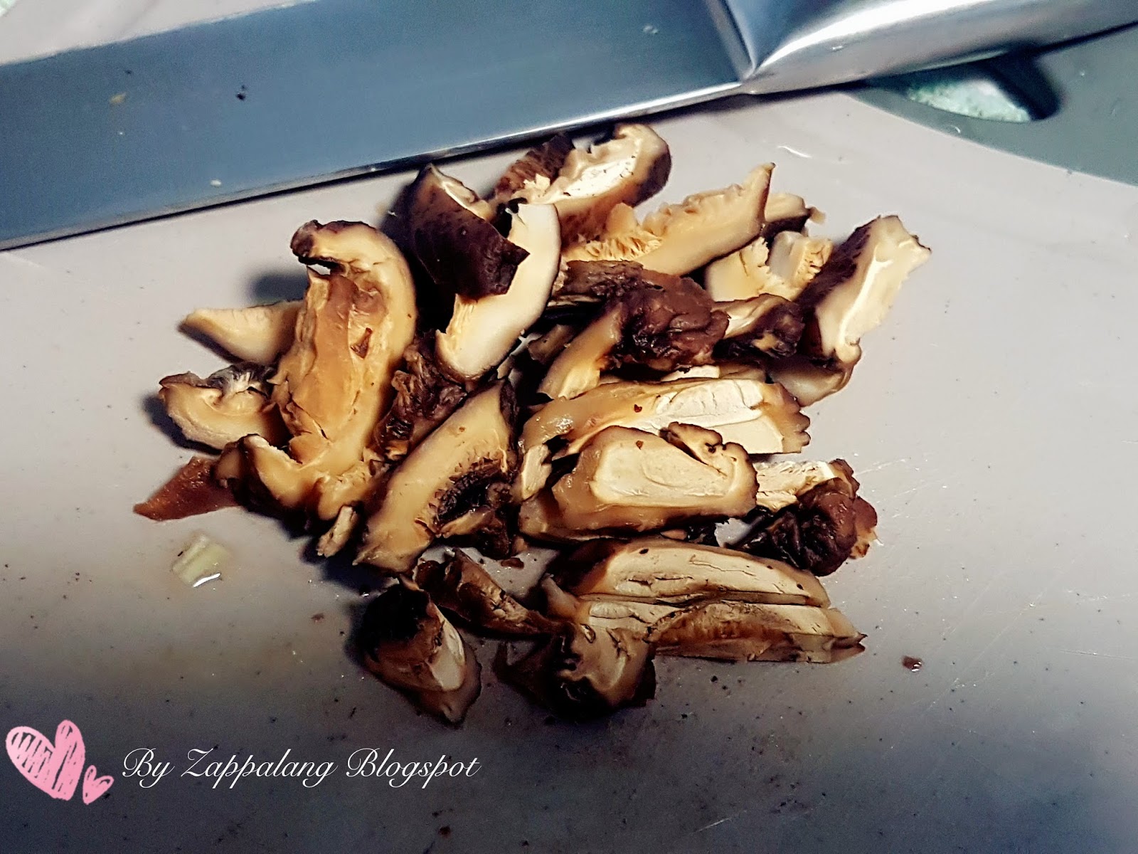 7。冬菇用热水泡软后切丝备用。