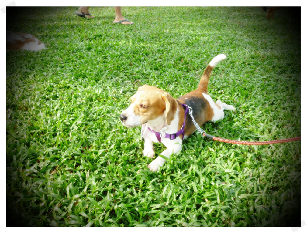 Dogathon时,看到好多米格鲁哦!我的狗狗第一次看到那么多狗狗,兴奋得一直拖着我跑。结果我现在的手好像断掉似的,手掌也应为一直拉着他而起水疱了! 虽然很累,但是看到他那么开心,一切都值得了! |