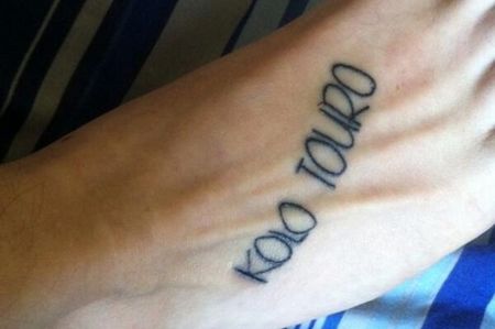 在推特上有一位ID为@domjpearson的利物浦球迷,他在自己的脚上纹上了今夏加盟利物浦的科特迪瓦中卫“科洛-图罗(Kolo Touro)”的名字,以表达对他的支持。