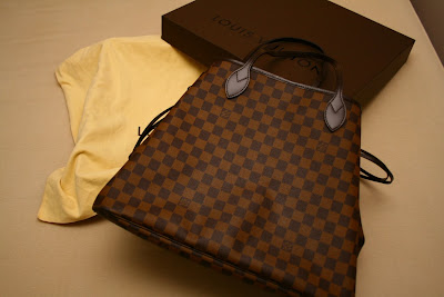 上个周日,嫂嫂的妹妹欧游,我兴奋得象是自己出游, 赶紧托她买Damier neverfull (mm) 和Monogram Eva. 这么说来, 欧洲是还买不到Damier neverfull 吧?失望! |