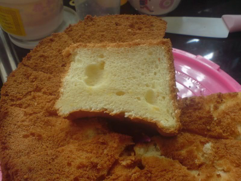 好久没上菜了,今天做了柠檬戚风。之前这个失败了3次,有点恐惧感。出来的成果居然出户意料的好。是我所做过的戚风中口感最好的了,又很香柠檬味。用了22cm的模不过是三粒蛋的。