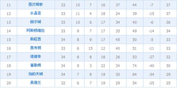 和争冠形势一样,本赛季英超的保级形势也同样扑朔迷离。联赛后10名最大分差不过12分,这其中还包括少赛2场的背景在其中。后7名最大分差才9分。桑德兰以25分垫底,虽然手握少赛2场的优势,但是他们剩余6场比赛对手可都很难对付,本月中旬,黑猫要先后客场挑战曼城和切尔西两大争冠豪门。第37轮,桑德兰又要与为欧联杯资格而努力的曼联竞争,他们剩余的对手基本都是保级户了。总之,桑德兰的前景并不乐观。倒数第二的卡迪夫城也一样,最后1轮要面对切尔西。富勒姆目前30分,保级任务依旧艰巨。而阿斯顿维拉、斯旺西、西布朗、诺维奇等队一旦出现闪失,也可能告别下赛季英超。在联赛收官阶段,保级大战也是一大刺刀见红的残酷较量,将是看点十足。