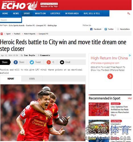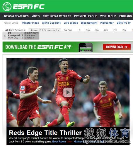 英媒:红军赢得史诗般10连胜 24年首冠就在眼前
