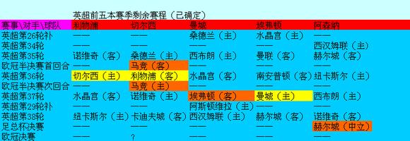 欧联杯资格的争夺也非常激烈。从目前的情况来看,欧联杯资格花落阿森纳和埃弗顿之间的可能性较大,但是热刺曼联也有机会。曼联目前只赛33轮,落后同样只赛33轮的联赛第5阿森纳7分,5场比赛追上7分的难度非常大,但是红魔还需打起百分百精神。剩余6轮,莫耶斯的球队有3个主场和2个客场,第35轮的比赛颇为关键,如果在对阵埃弗顿一战失利,那么莫耶斯将基本告别下赛季的欧战。热刺在多赛1场的情况下位居第6位,他们剩余4轮的对手都是保级球队。本赛季在硬仗中发挥欠佳的白鹿巷人能够顶住吗?