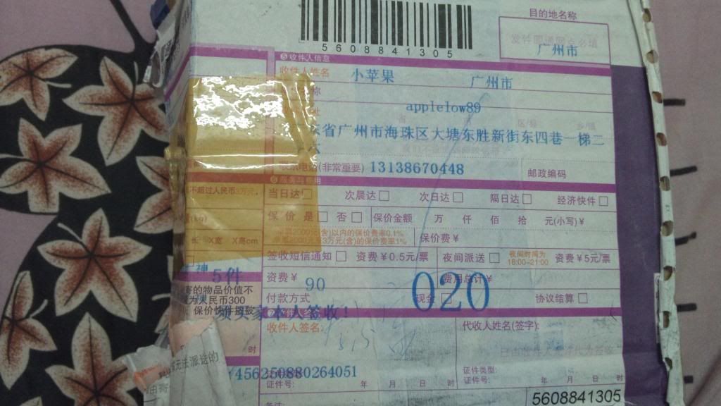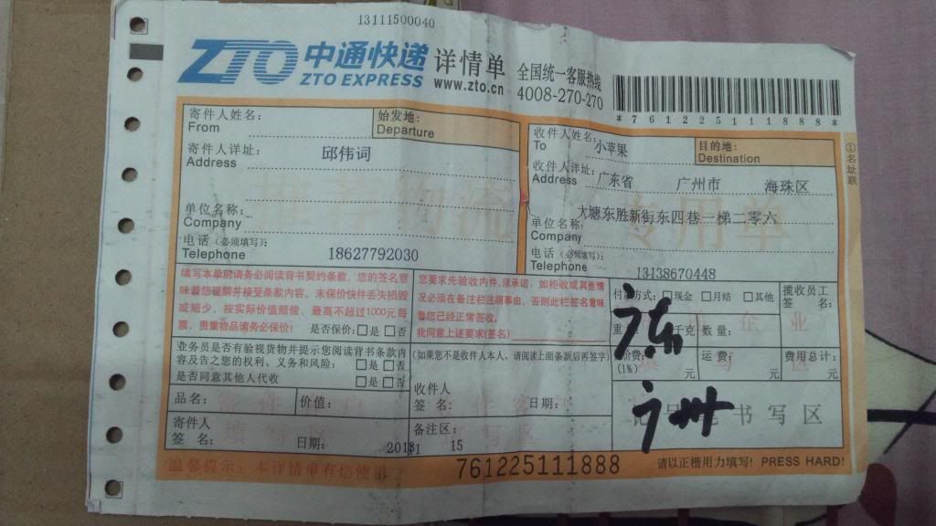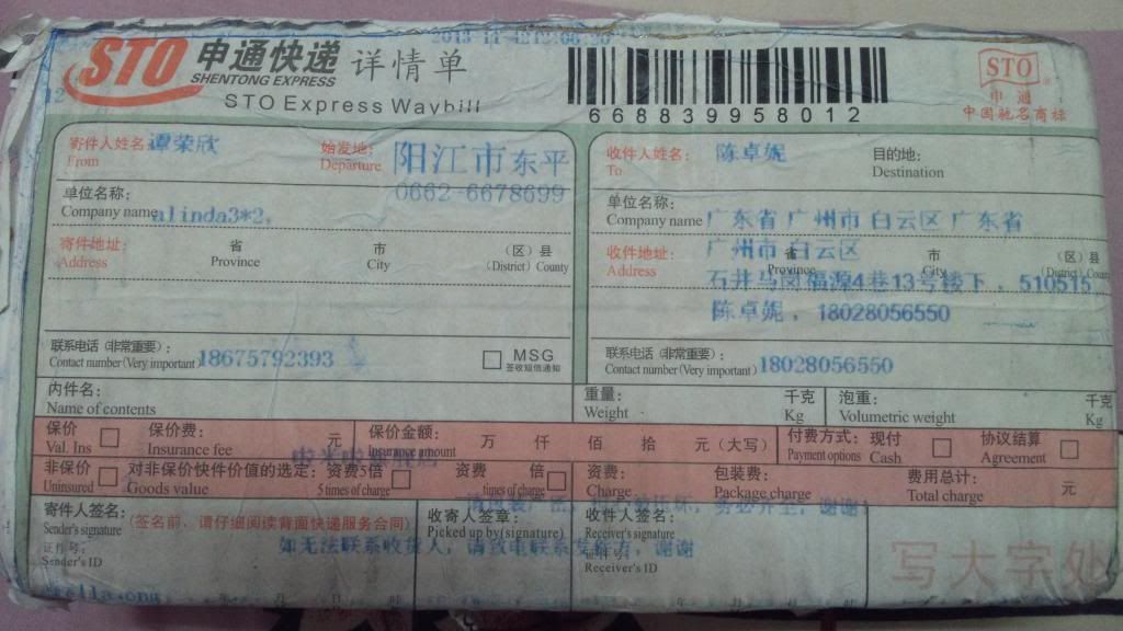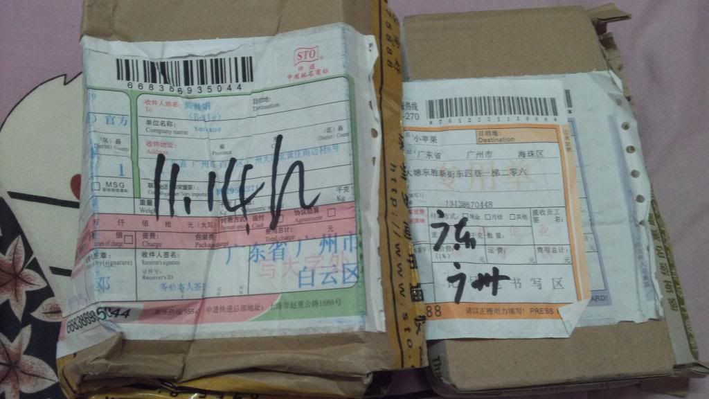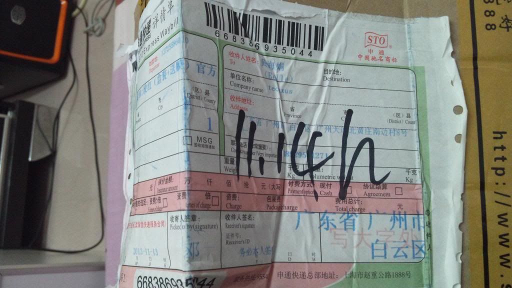 [12/3/2013 7:30:51 PM] LOU佳合: 你叫你客人看下那个盒子上的快递单上的地址是