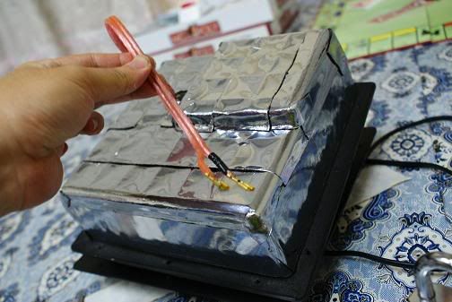( 它的表面是铝箔, 脱掉碰到电板就危险了 )