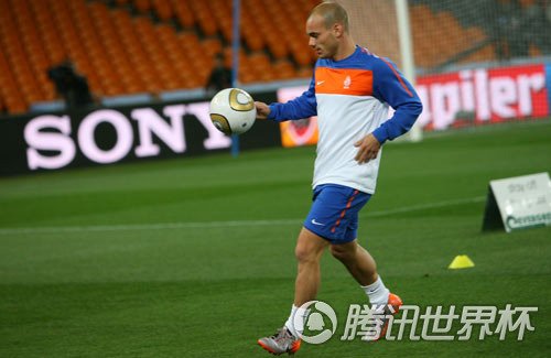 南非当地时间7月10日,荷兰队在足球城体育场完成了决赛前的最后一堂公开训练课,而向来对媒体很开放的荷兰队并没有因为这是一场决赛前的训练对媒体封闭,而是全程开放,丝毫没有心思打任何情报战。