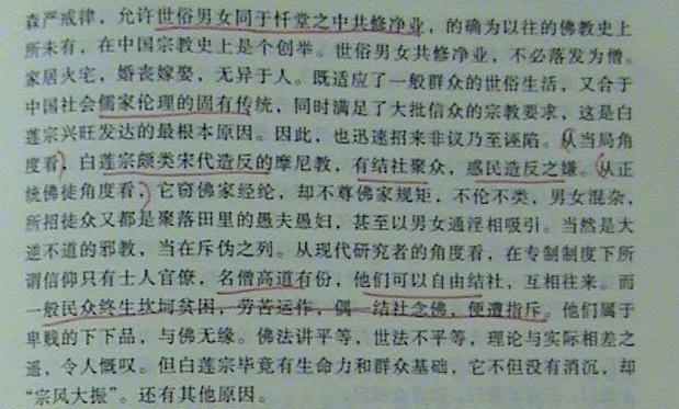 熟悉弥陀净土者,必然知道我人之所以迫切希望往生极乐净土,乃是有感于此土的恶劣环境,苦难众多,难以成就,而这种体会,实际上下层阶级的人更能感同身受,所以他们才是真正迫切需要从宗教(佛教)信仰中得到安慰,安身立命的一群,不幸的是,他们是被(正统佛教)遗忘的孤儿。即使从今时今日的佛教界来看民间宗教,附佛外道,也还是和当时没有两样。以当时的佛教界来看,并没有适合的因缘环境让他们入佛门,得摩尼宝珠,从中得到生命的安慰。。。