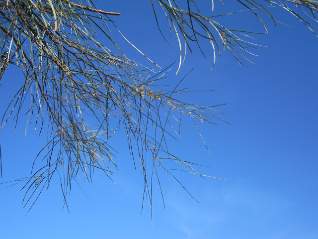 沙漠地带的植物,带层蜡的细长叶子,减少水分流失。