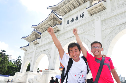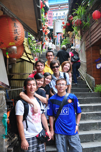 离开这里后,我们就去九份老街,那里可多东西看了。可是没想到这次走的路怎么和以前走的有点不一样?原来是Alan走后路上去,大概是因为比较不塞车吧!看到美景还可以让他停下给我们拍照。