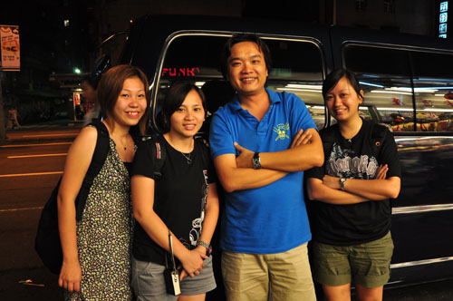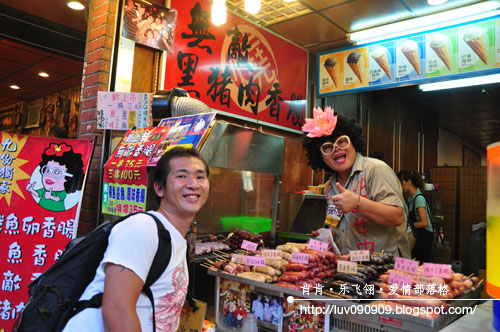 由于车子停在半路,所以当有其他机车或车子要过的时候得小心翼翼。这时候我们突然看到一个奇景--和尚开机车!对,没错!就是庙里的和尚在开机车上山啦~可惜我们来不及拍照就被他跑了,哈哈~ 大约十分钟后,我们就来到了九份老街啦!Yeah~