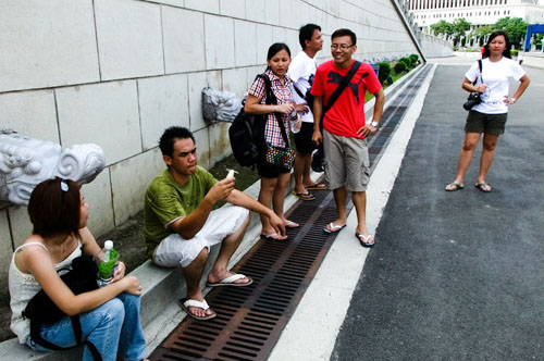 由于太贪心的缘故,即要小心吃着冰淇淋,又要看东西拍照,最后Elfin建议还是找个地方吃完了冰淇淋在看好了。结果我和老公吃冰淇淋的丑态就被偷偷拍下来了~ 囧