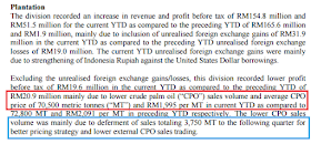 回顾去年同期,该公司的种植业务乃录得一笔2300万令吉的账面外汇收益。