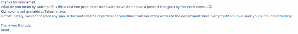后来那位小姐又再回复,说我们找的叫做Iron handle Saucepan with Lid 18cm