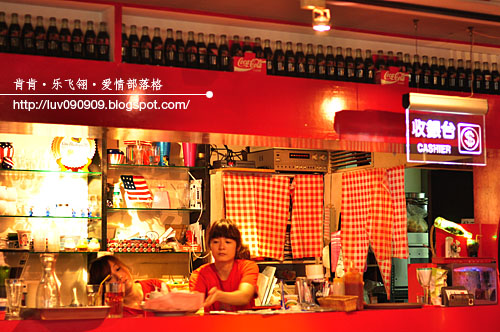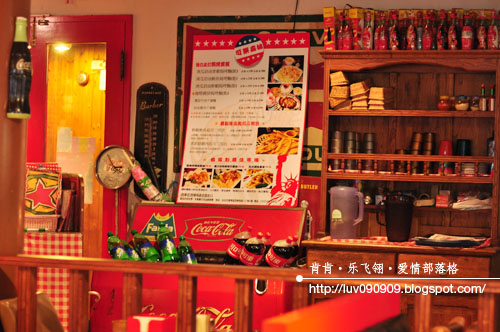 餐厅内都是以美式风格装潢,以及红白色为主题,灯光有点昏暗,但是却很适合用餐的气氛,赞~
