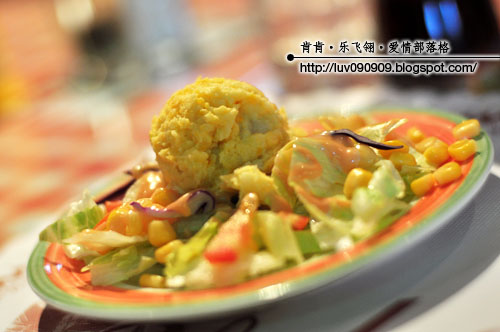 这是开胃餐沙拉,没想到还有我喜欢的薯泥~ 而且味道很好噢~我开始期待我们的主餐了~