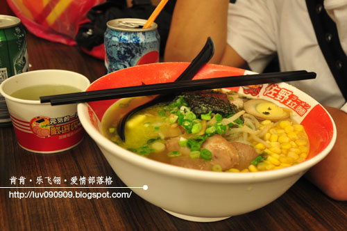 走来走去,也不知道要吃些什么,因为这里有名的铁蛋是我们却之不恭的。最后我们来到了佐野拉面,门口还有一个拉面武士的大公仔哦!