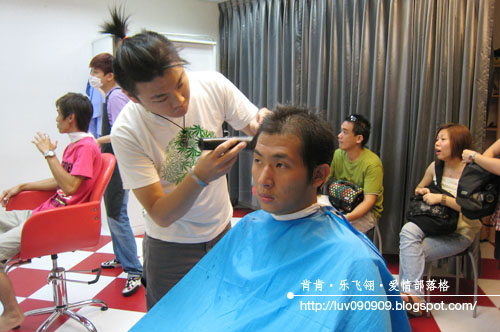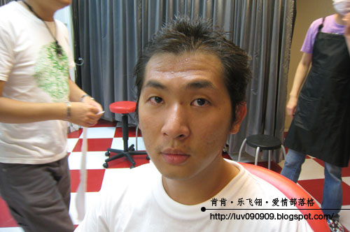 由于刚才走得满头大汗,老公又是容易出汗的体质,所以理发师一看到他的时候还质疑的问他是不是有抹发胶?不知道为什么,感觉上对方的眼神有点不屑。。。理发前拍照,准备对比Before After嘛~