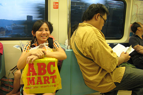 拎着大包小包的战利品,我们出发去淡水咯。去淡水有两班列车,一班可以直接到淡水站,另一班则需要到北投转车,方能抵达淡水。可是我们一看到车子就上车,浑然不觉我们必须转车。一直到广播说北投是最后一站的时候,我们才惊觉我们该下车了。。。