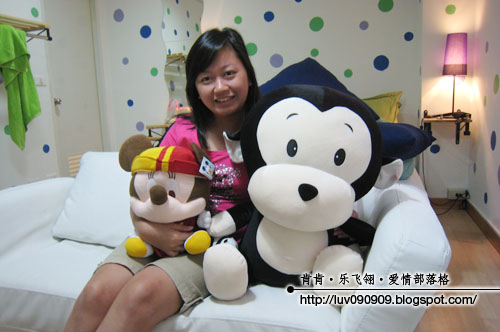 玩了NTD 800,加上Blaze之前玩得分数加起来,老板让我们挑选一个最大只的娃娃!看来看去,最后我选到了一个没有名堂的大猴子(还是猩猩),因为只有这样才够本啊!而且是Taiwan Made的哦,质量不错~可是要抱着它到处走会很累的事实,我却没有考虑到,结果。。。