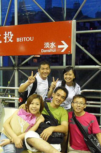 继续我们去淡水的途中,突然进来了一个很有分量的男生又正好坐在Elfin旁边,显得Elfin娇小多了,像小学生一样~ 因为不敢在那里那么明显的笑,所以我们都偷偷拍照回来慢慢笑个够好了~哈哈!