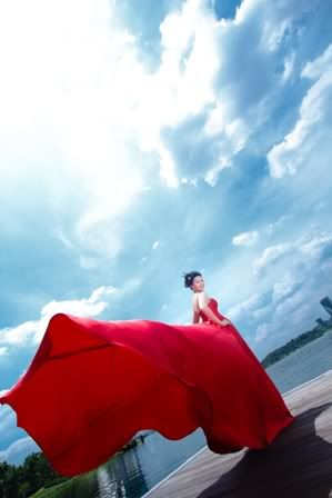 好美~你的红色系列和竹林系列都很好看!!这个湖边红色系列真的很棒!蓝天白云配红裙~哇噢~美呆了~期待你其他的了! |