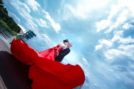 哇哇, 实在是太美了。 蓝天白云,阳光。。 再加上你的红色礼服。。。 好羡慕你哦。 不用拿别人KG的来比较了,你的照片已超棒了。 |