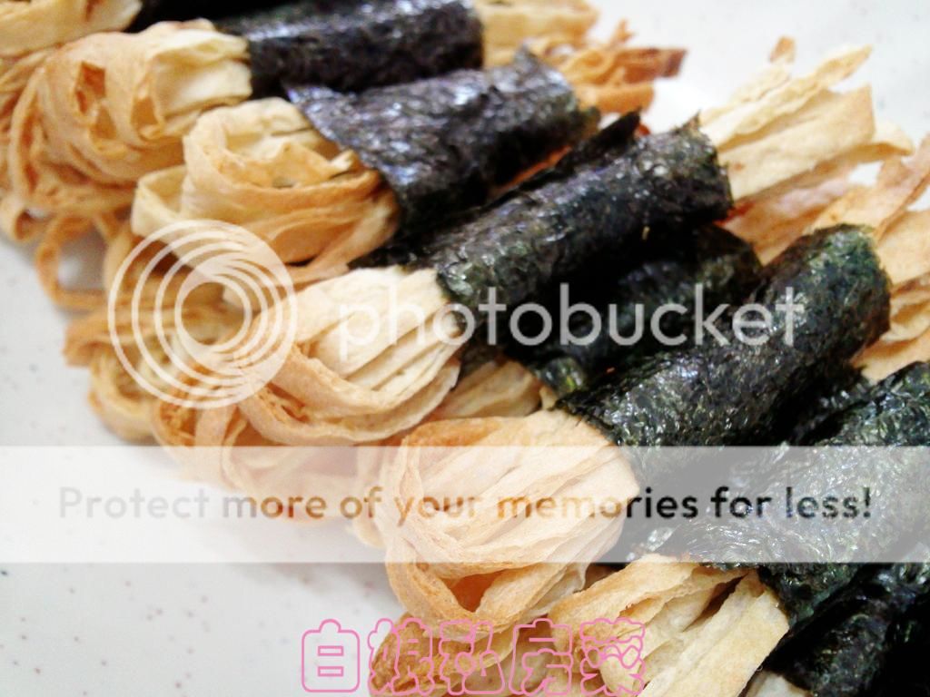 | 白娘 发表于 15-2-2013 09:34 PM  假如很脆的紫菜,可以预先扫一次蛋白液,让它比较软(容易卷起来)。。普通长度的大发鳕鱼丝对半折(有些 ...