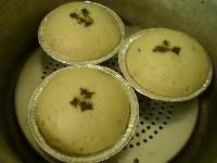 5. 倒入模型9分滿,灑上少許葡萄乾,外鍋放1/2杯水,蒸到跳起即可 |