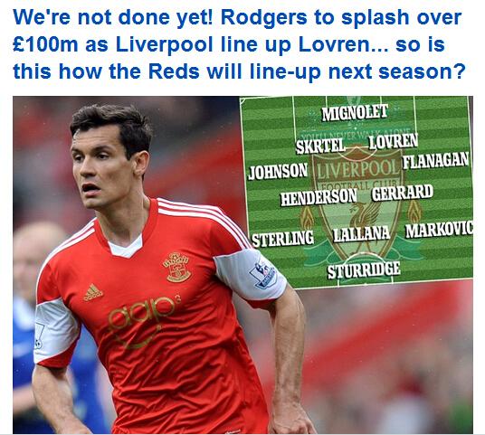 后防线方面,约翰逊、斯科特尔、洛夫伦、弗拉纳甘从右到左依次排开。红军防线的变化主要是洛夫伦,虽然他们现在还没有确定引进这名球员。可是南安普顿中卫离队心切,他一心想要加入红军。因此,在《每日邮报》看来,洛夫伦加盟利物浦也只是时间问题。不出意外,近期这桩转会案便会完成。