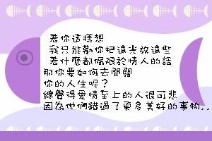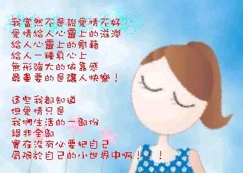 人生是美好的,说真的到现在我觉得好像只有我的人生是黑白的,有时候脾气不好,在朋友面前发发小姐脾气,最后换来的却是一个个怕掉我,我以为朋友之间相处是可以很真的,所以我从来就不会伪装自己也不会怎样虚伪,我从不掩饰自己所有当时的感觉。