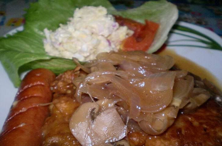 chicken chop+patatoes salad+美美的维尼面包 monori我也要一份 |