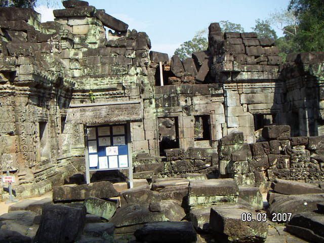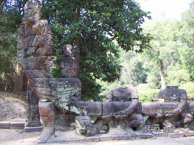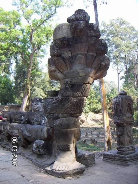 天水,你弄错了 ,吴哥文明最伟大的地方是同时容纳佛教和婆罗门教,圣剑寺前后就包括了两种宗教的建筑风格。这些被破坏的也包括婆罗门教,都是在那个70年代战乱的时候,被疯狂地刮,砍,刨出去卖钱。。