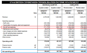 从上图我们可以看到,这个季度的飞机原油开销比去年增加了RM322 mil。主要是因为航班增加以及油价上涨,不过这都是处于良好的范围。