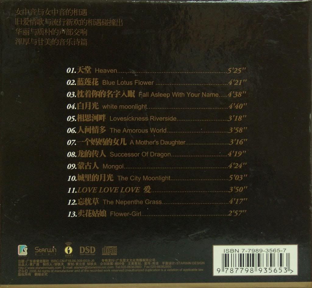 這張由香港馮大師母帶制作人制作,空間感,質感都好,但有些偏亮,難道這種錄音適合大陸的胃口? |