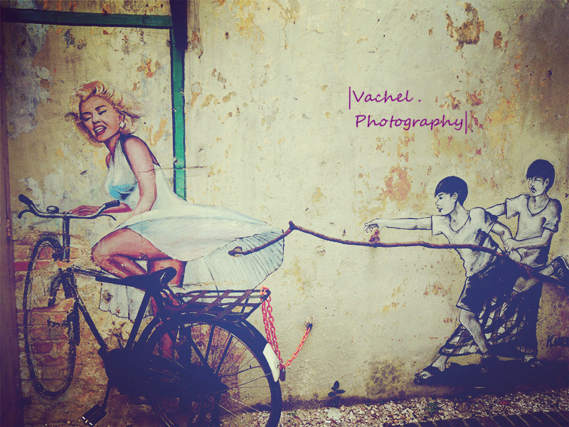 一走进小巷,就深深被这壁画、环境、还有那台阿公年代的脚踏车给吸引住了