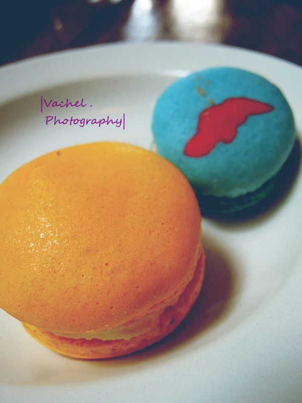 马卡龙一上桌,就先 “喂饱” 了大伙儿的相机 xD 大家你一口,我一口地吃着,好像都已经忘了是啥味道了 只知道,这两颗马卡龙 “价值不菲”,两个大概要价 RM15,咋舌!