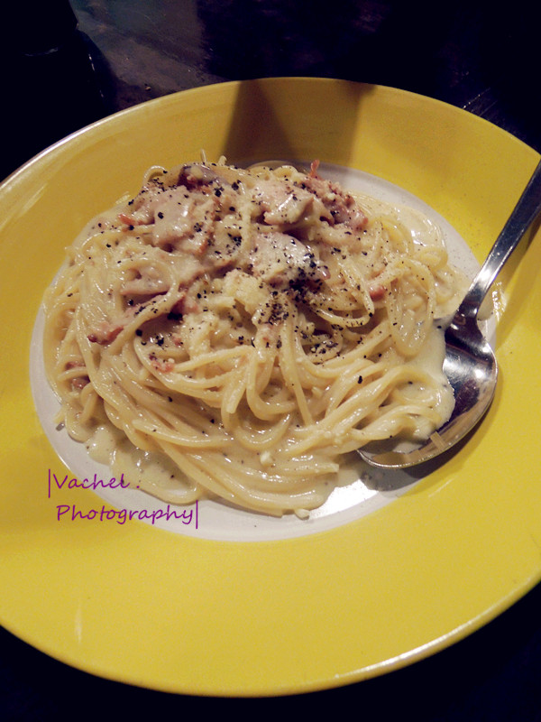 Pasta Carbonara,原以为会很腻的感觉,结果出奇地比番茄酱意大利面来得好吃