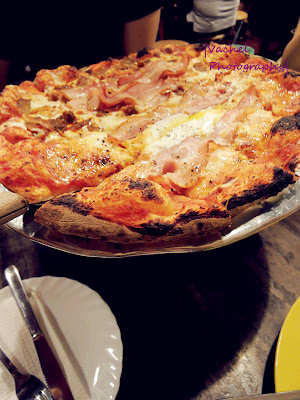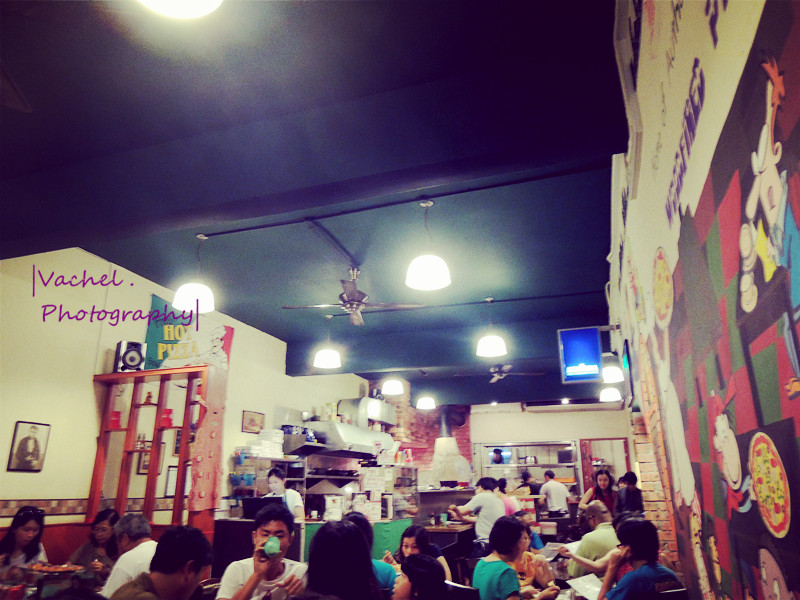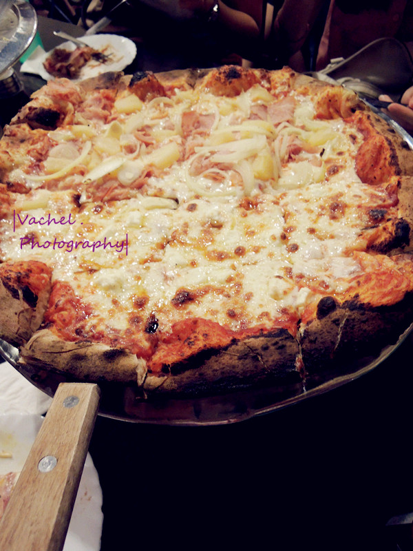 加上下了一场雨,天气凉凉的,我们也显得意兴阑珊 晚餐时间,友人 KW说带我们去吃好吃的披萨~ 到底有多好吃呢?就是人潮多到我们已经打电话预定了,抵达店面时还得在外头等待半个小时有多,你说呢?