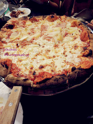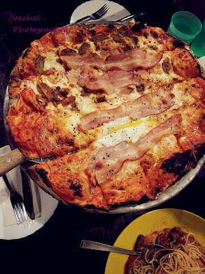 顾着品尝美食,忘了 =P 值得一赞的是,店家都不吝啬给起司,放很多,大爱! 饼皮烘烤得很香脆,很合我口味,因为个人不喜欢吃厚厚的披萨皮 烂人说,那样才吃得饱 =.=