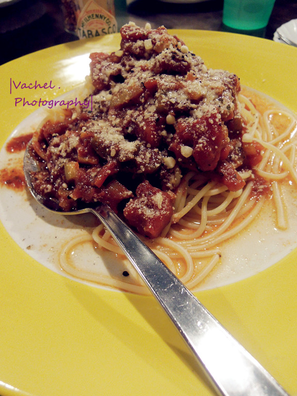 是家欧美风的小餐厅 在外头等了半小时,加上午餐早已被消化得无影无踪 我们都饥肠辘辘,点了番茄酱意大利面 个人是觉得番茄酱调味太酸,让原本很喜欢番茄的我有些失望~