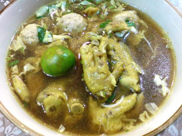 剛才放工后去天橋底買的SOTO KAKI AYAM & BOLA DAGING(自己按的...)~