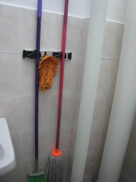 都也要钻洞的沃。市面上有卖一些是用双面胶粘的比如3M牌子,但我怕抹地棍太重双面胶没办法撑会掉下来,如果是说扫把之类就比较轻的应该还好吧。朋友告诉我说cosway的4个1排的用双面胶或钉的也行(但不知道是不是真的,我是只要2个摆厕所用) |