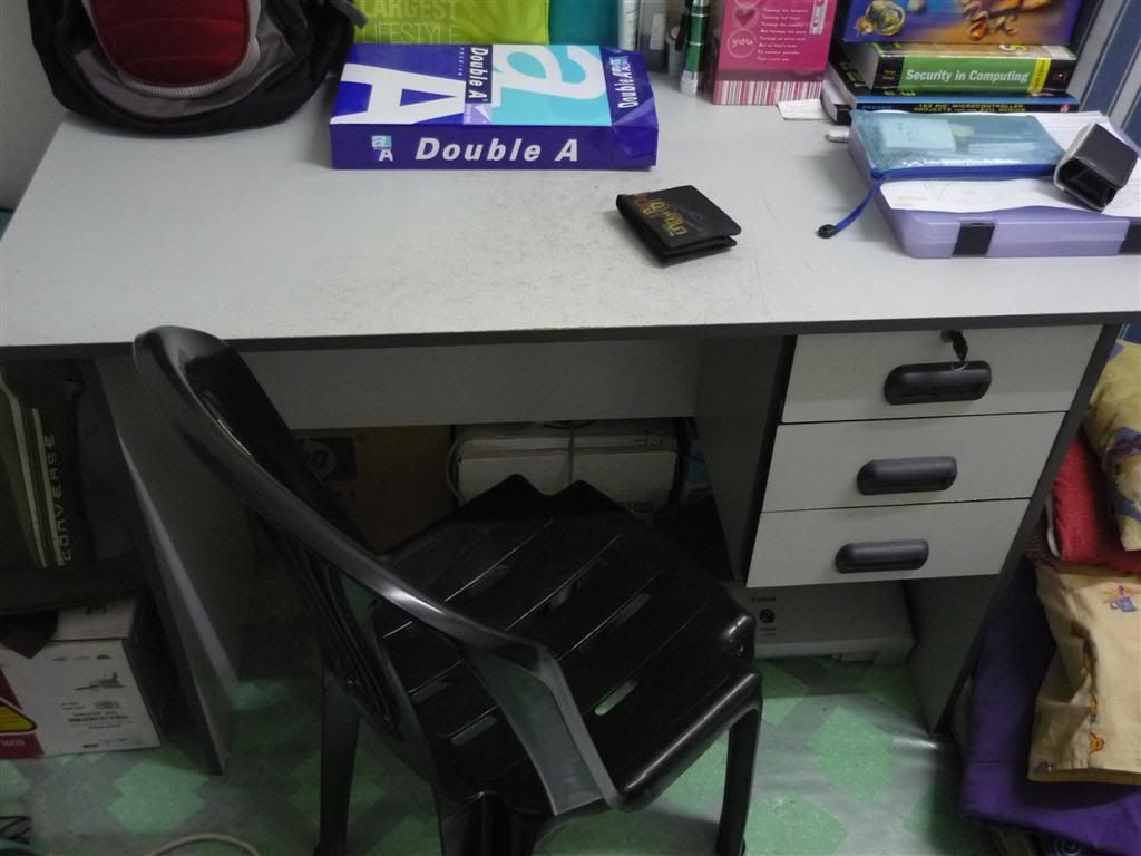 2 个 3-Tier 书橱 ,一个大书桌(抽屉可以上锁)和一个电脑桌 = RM 70