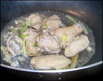 姜切片,葱切段,蒜米少许,冰糖三四颗,酒小半碗(我用了妈爹)