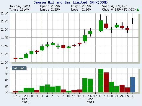 Samson Oil & Gas Limited (SSN) - SSN rallied back above $2.00 on Wednesday. SSN will now have resistance located at $2.35 & $2.45. Pullbacks below $1.60 are a buy.