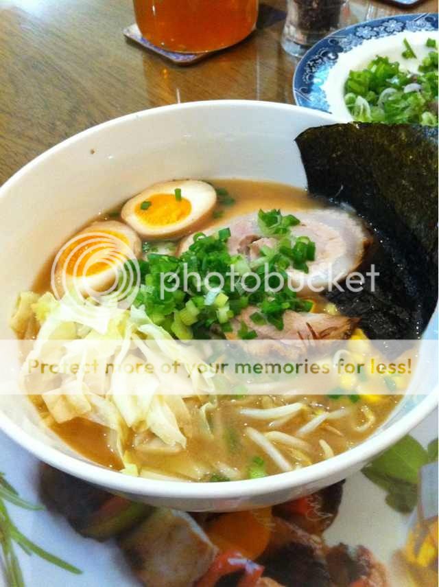 我的豚骨叉烧拉面配溏心蛋。都是用hob煮的。叉烧有派staub出马。